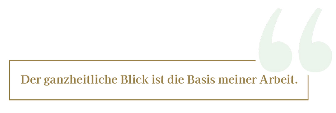 Ich hole den Menschen da ab, wo er gerade steht, nehme ihn so an, wie er ist, und betrachte ihn und sein Thema immer auf mehreren Ebenen. Dazu nutze ich verschiedene „Werkzeuge“, wenn ich das mal so symbolisch ausdrücken darf, mit denen ich arbeite. Daher lässt sich mein umfassendes Tun gar nicht so leicht mit wenigen Worten beschreiben. Aber ich versuche es mal so: Ich setze mich mit Leidenschaft für die Gesundheit meiner Klientinnen und Klienten auf physischer, mentaler und emotionaler Ebene ein. Dabei lasse ich wissenschaftliche Erkenntnisse, Spiritualität und Intuition sowie meine jahrelange Erfahrung mit einfließen. Ich glaube, es ist diese besondere Kombination, die mich ausmacht und mein persönliches Erfolgsrezept ist.