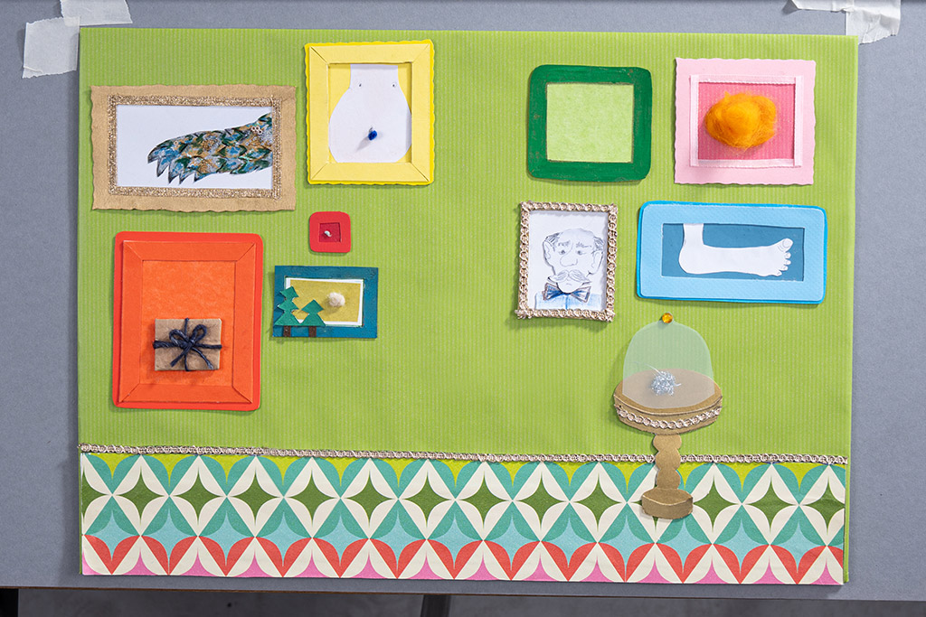 Ja, ich habe alles selbst gebastelt (strahlt), es ist ein klassisches, handgefertigtes Bilderbuch geworden, das auch die Jüngsten anspricht. Seit jeher bin ich eine Basteltante, und so habe ich mich hingesetzt und mit sämtlichen Materialien, die mir so in die Finger kamen, geschnippelt, kreiert, geklebt. Ich war da ganz nachhaltig: Ich habe eine Wachstuchtischdecke zerschnitten, alte Tapeten- und Stoffreste verwendet, eine Netzstrumpfhose, sogar die alte Kittelschürze von meiner Oma. Übrigens habe ich alle Materialien im Buch aufgelistet, so das man als Detektiv auf Materialsuche gehen kann. Außerdem kann es als Anregung verstanden werden, selbst auch Freude daran zu entwickeln, mit ausrangierten scheinbar nutzlos gewordenen Dingen kreativ zu werden. Basteln ist toll, und auch der Begriff ist für mich nicht abwertend.