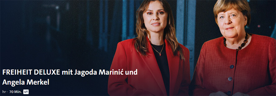 Journalistin Jagoda Marinic hier im Gespräch mit Angela Merkel, unserer ehemaligen Bundeskanzlerin – (zeitlose) Folge vom 6. März 26.